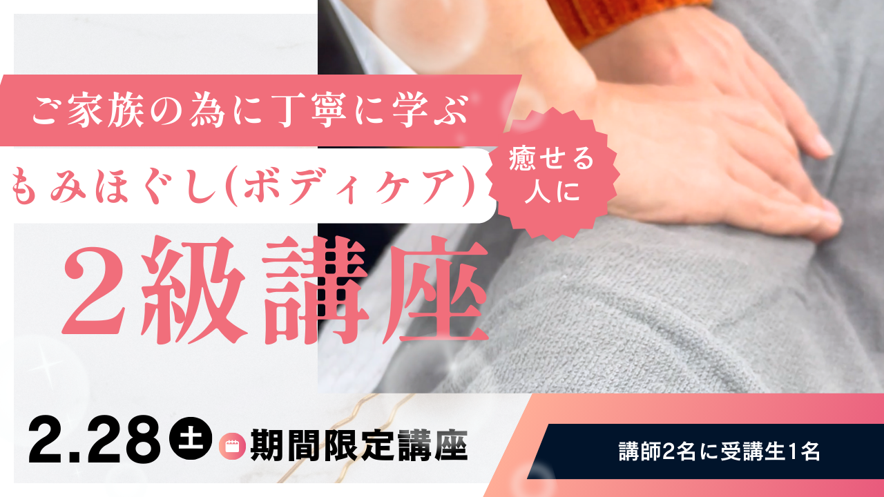 1月・2月限定の2級講座ですが、早くもボディケア2級講座の卒業を迎えられた受講生さまがいらっしゃいます。