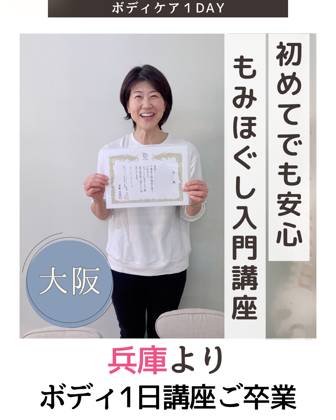 先日は、兵庫県から大阪までお越しくださり、ボディケア1日講座をご受講された生徒さまがいらっしゃいました。