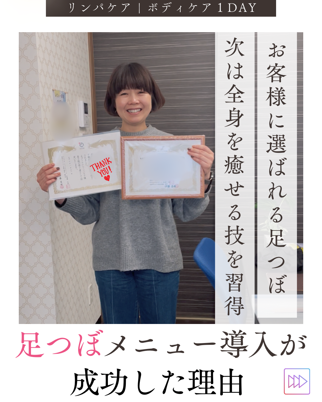 約1年が経ち、足つぼが人気メニューとして定着され、次のステップに進まれた生徒さんのご紹介です。