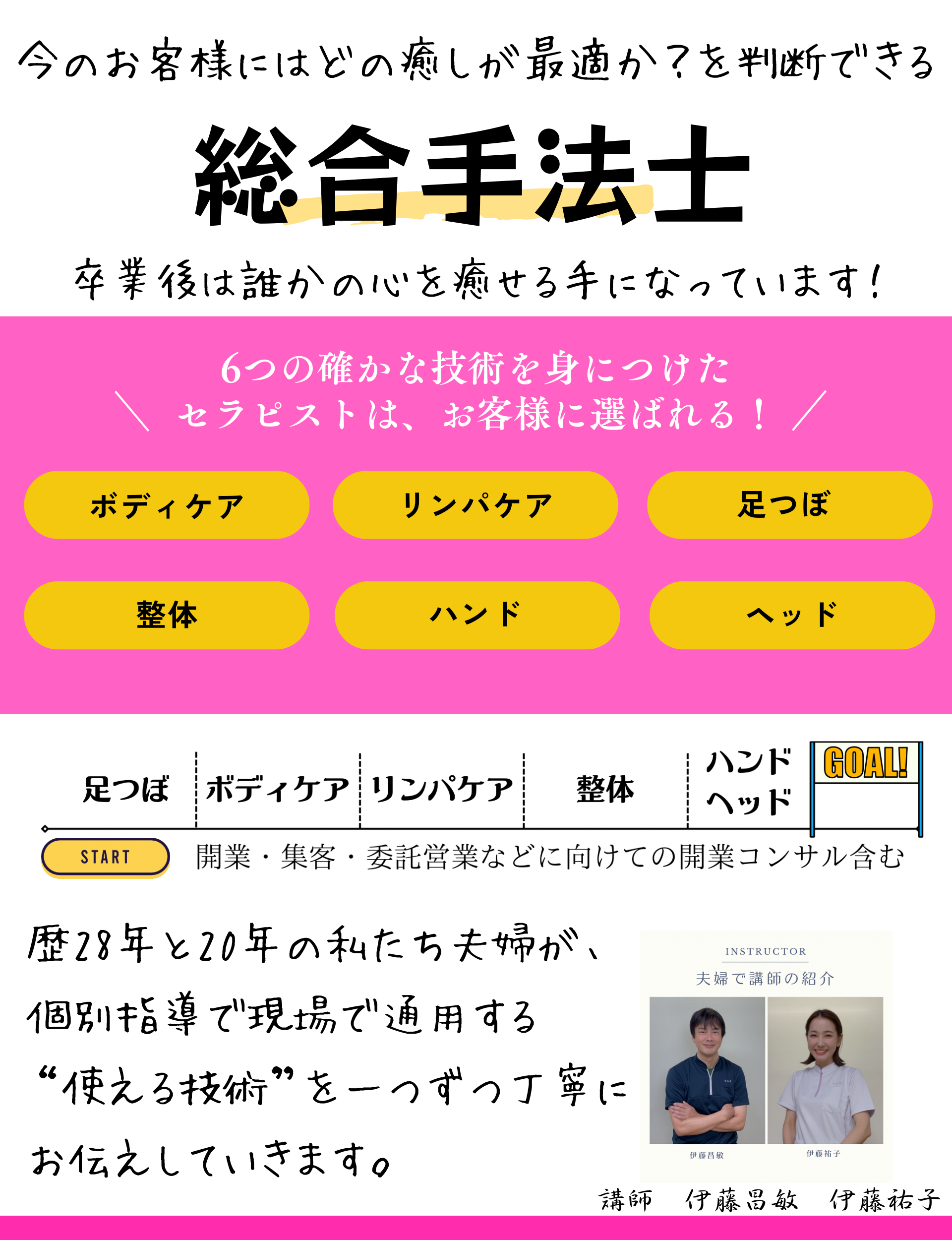 「遠回りをせずに、技術の引き出しを増やし、対応力のあるセラピストになれるコース」